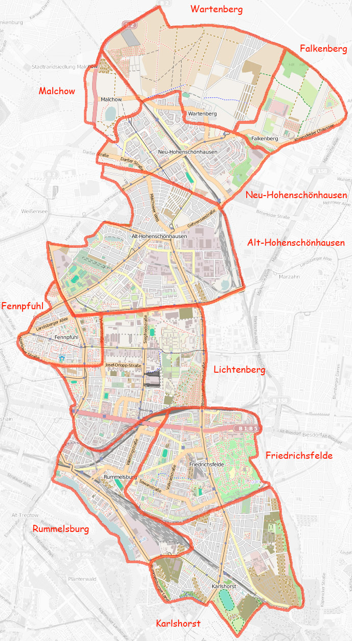 Hier sehen Sie eine Übersichtskarte von Lichtenberg. Bitte klicken Sie zunächst auf den Ortsteil, wo Sie das Eichhörnchen gesehen haben.